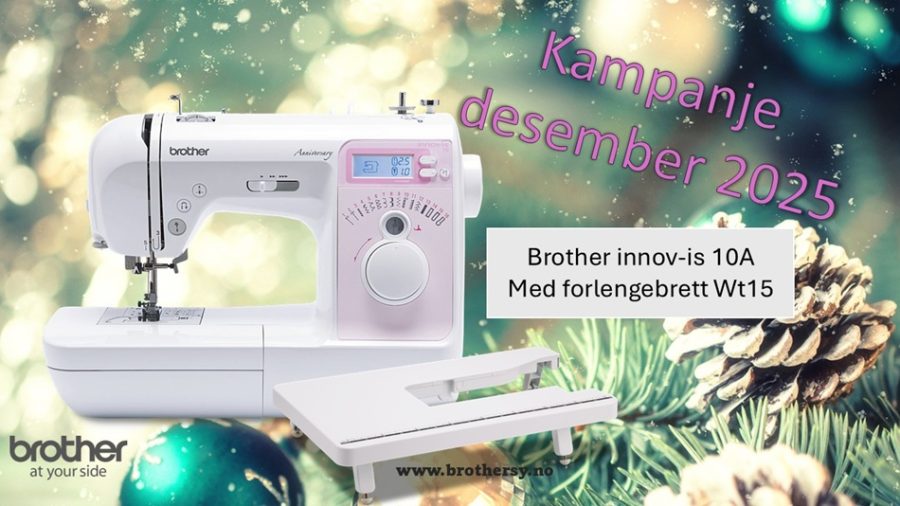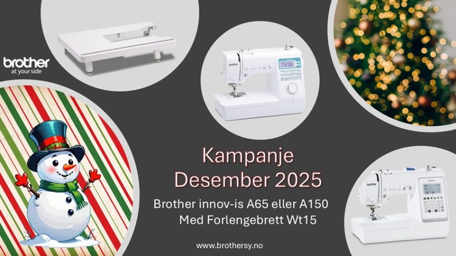 Drømmer du om en ny symaskin før jul? Nå har du sjansen! I hele desember får du tre av Brothers mest populære modeller – A65, A150 og NV10 – til kampanjepris inkludert et GRATIS forlengerbrett som gir deg større arbeidsflate og enda bedre kontroll når du syr.