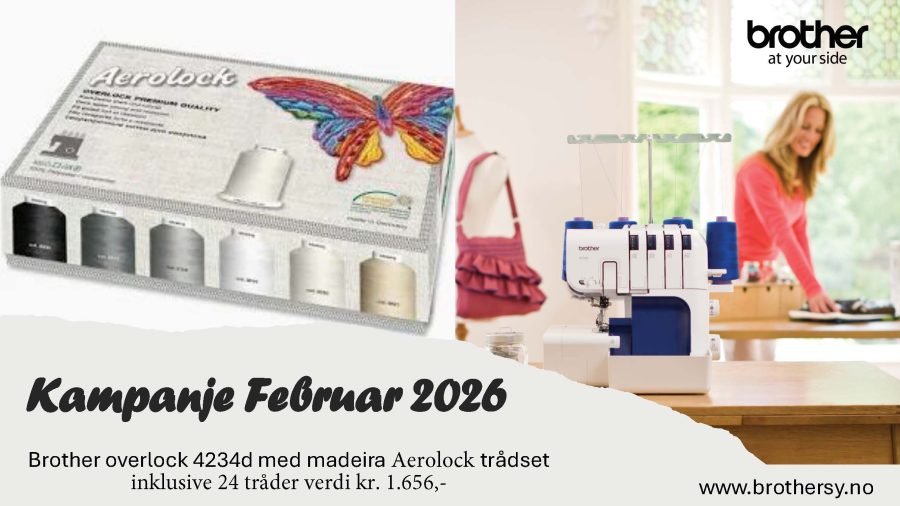 Vi kjører nå en flott kampanje på Brother 4234D overlock – en brukervennlig og driftssikker overlockmaskin som passer perfekt både for nybegynnere og erfarne syentusiaster.